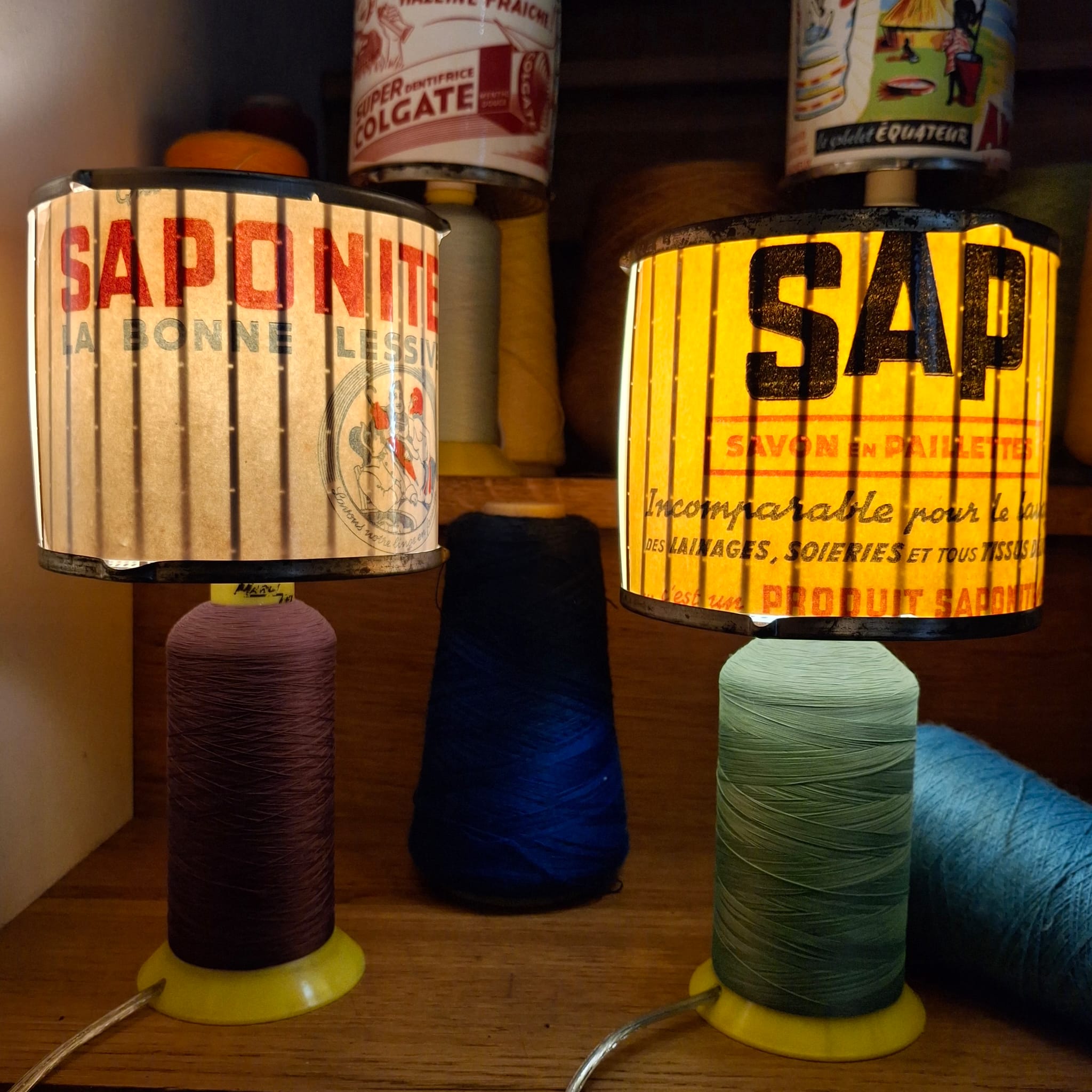 Bobine de filature, râpes à légumes,authentique buvard vintage. Electrification neuve.